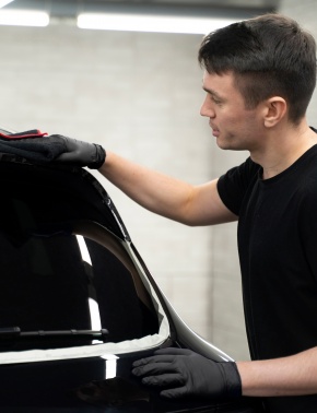 • Aplicação de películas de escurecimento automóvel, com várias opacidades e níveis de transmissão de luz.