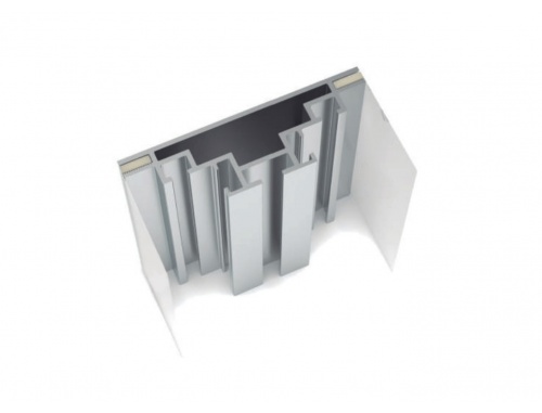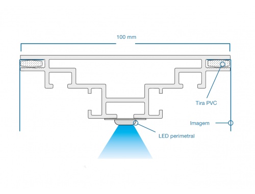 Perfil têxtil para caixa de luz dupla face desenvolvido para criar totens têxteis de duas faces, com tecido tensionado em ambos os lados. O sistema permite instalação com pés de suporte ou suspensão, integrando reforços opcionais para maior estabilidade.
